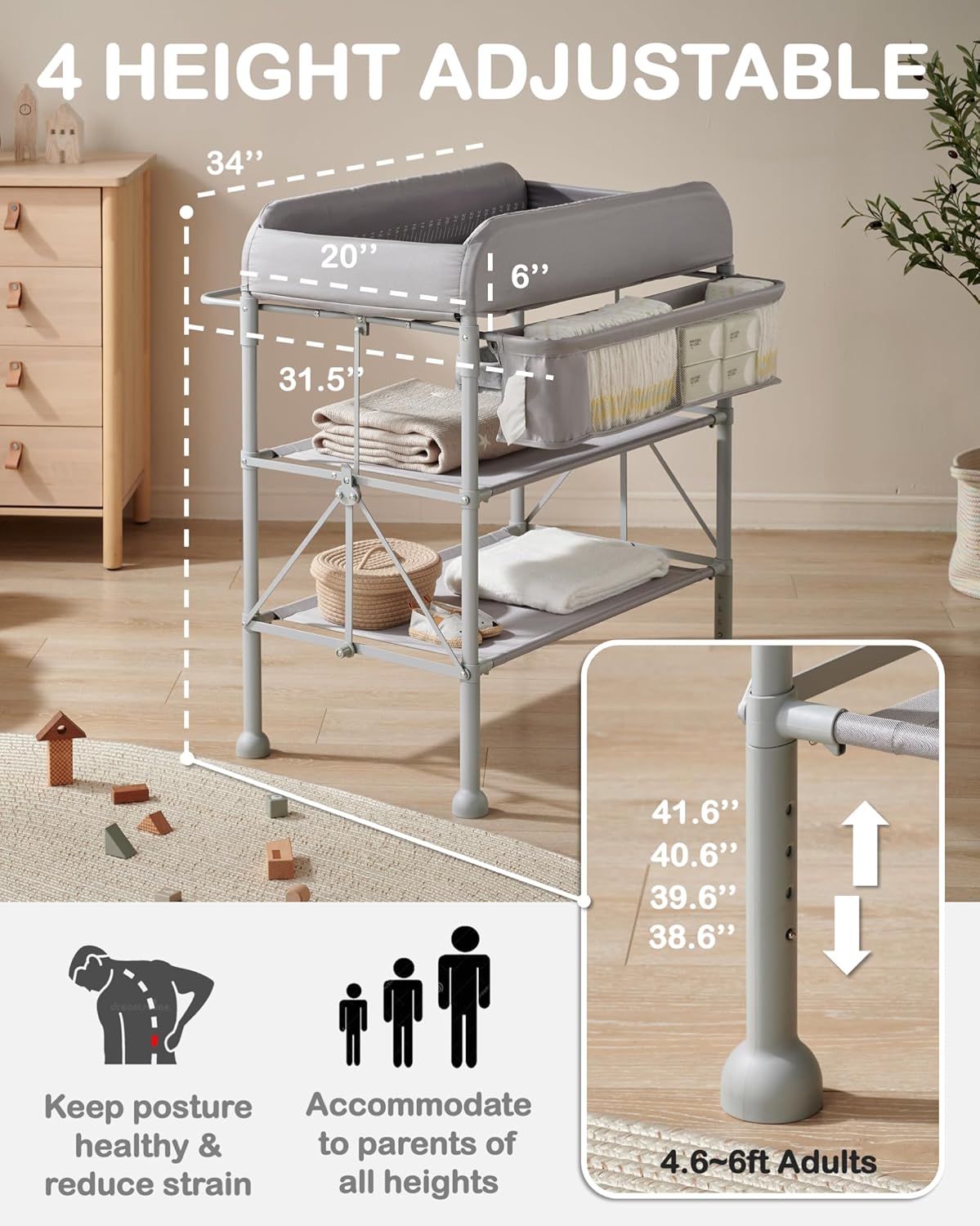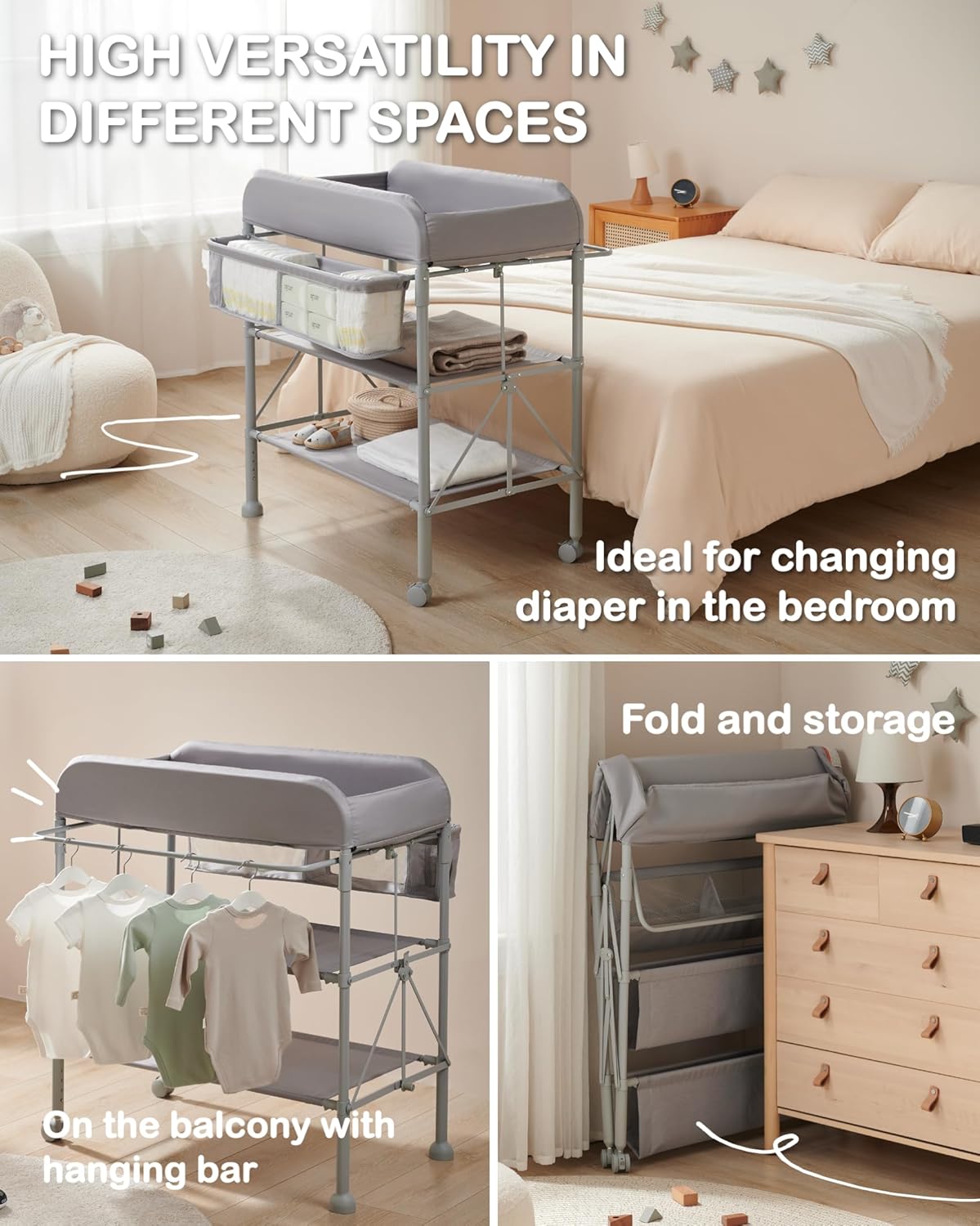 • Space-Saving: The compact folding design makes it perfect for small spaces or for parents who need a portable solution for diaper changes.