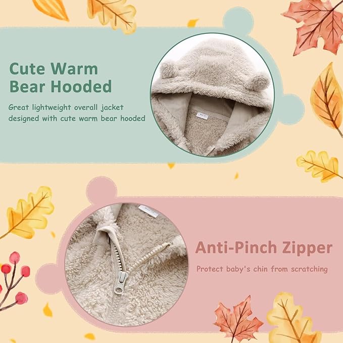 • Fluffy Fleece Fabric: Soft, plush fleece material provides warmth and comfort, keeping your baby cozy all day long.